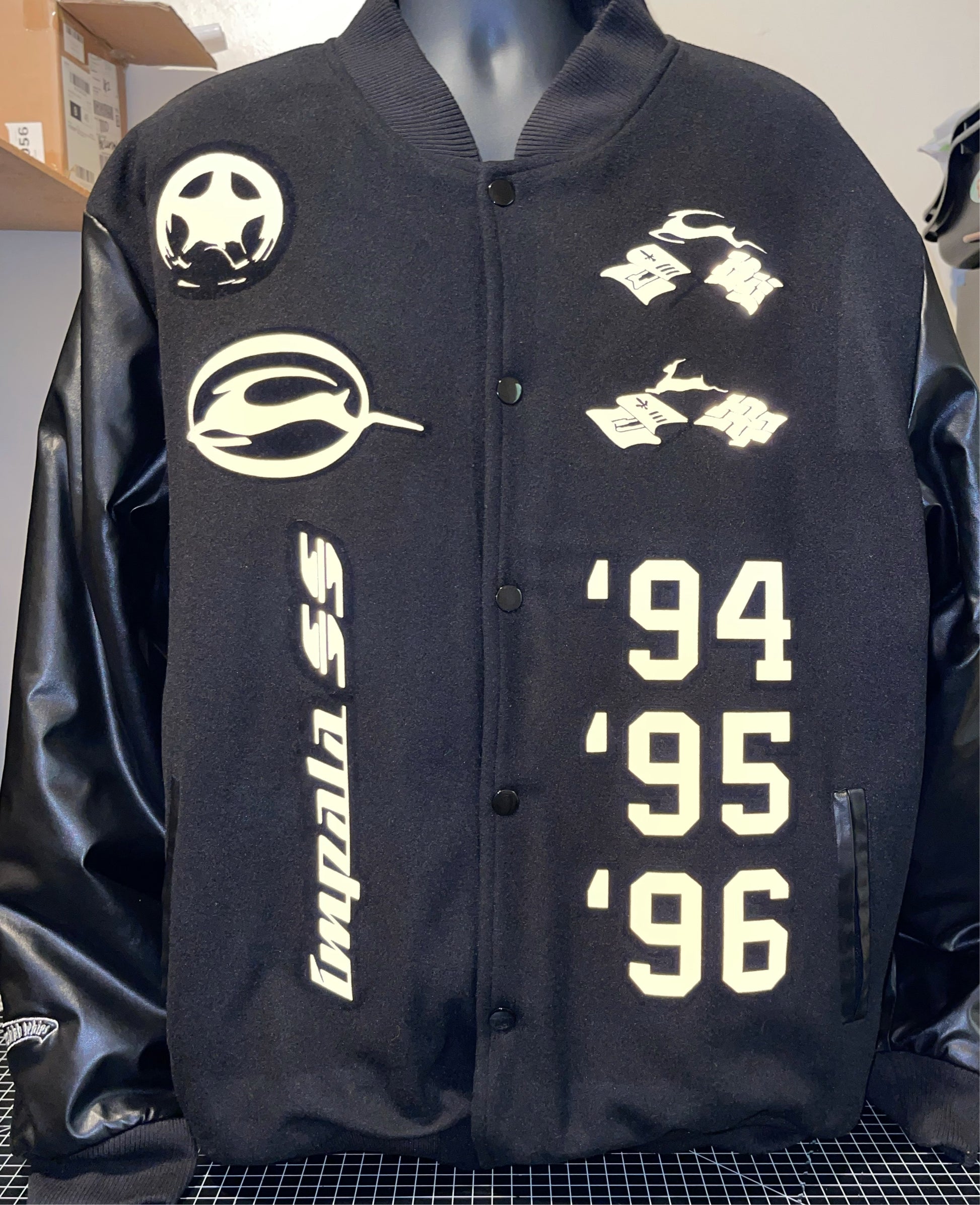 Impala University ‘94 ‘95 ‘96 Heavy Letterman Varsity Jacket Triple Black
